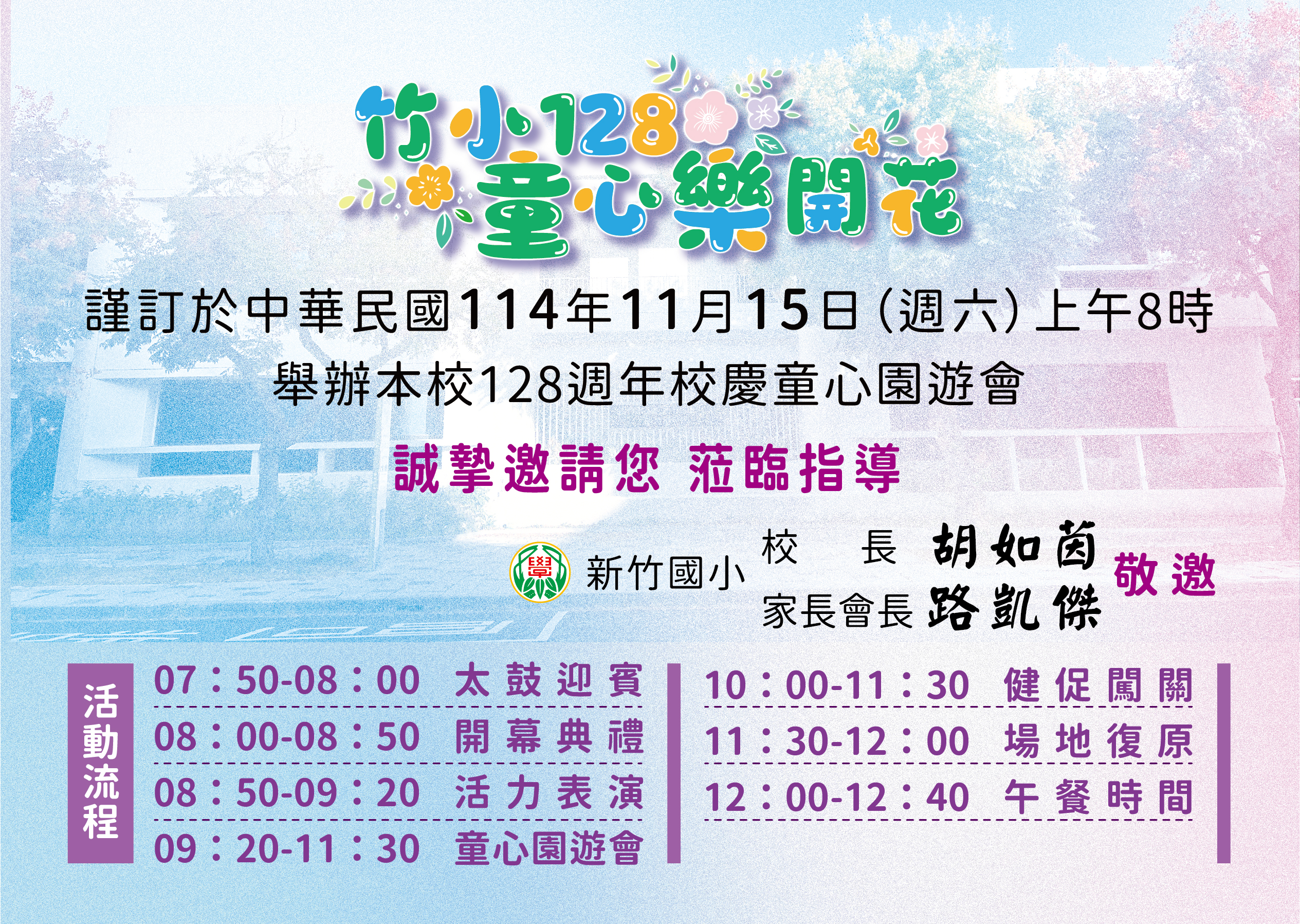 竹小128週年校慶園遊會,誠摯邀請您的參加。和孩子共度美好時光。
